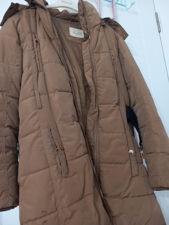 Bej renkli, normal kalıp, uzun kollu kadın kışlık mont. Kürk detaylı, midi boy ve notched lapel yakalı, rahat ve sıcak tutan fleece kumaştan.