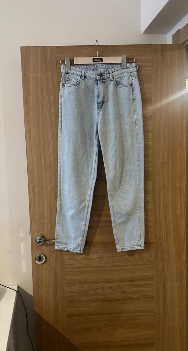 Kadınlar için pastel bej renkte, normal boyda, desen içermeyen, rahat loose fit denim pantolon. Günlük kullanıma uygun, trend sokak stili için ideal.