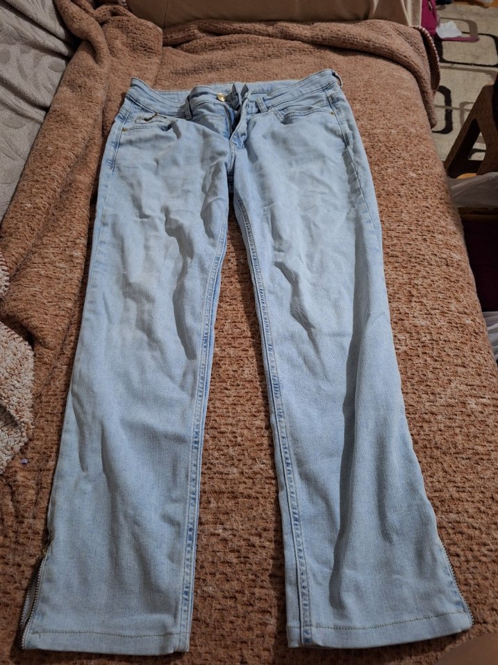 Kadınlar için bol kesim, bej tonlarında, fermuarlı detaylı normal boy kot pantolon. Rahat sokak stili için uygundur.