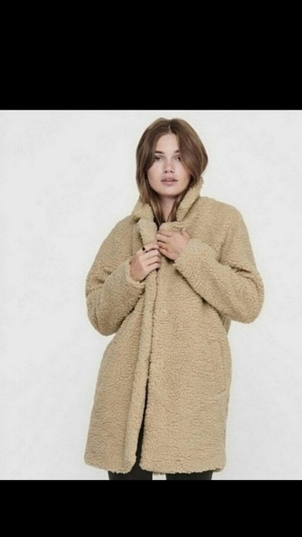 Kadın Bej Midi Peluş Kaban