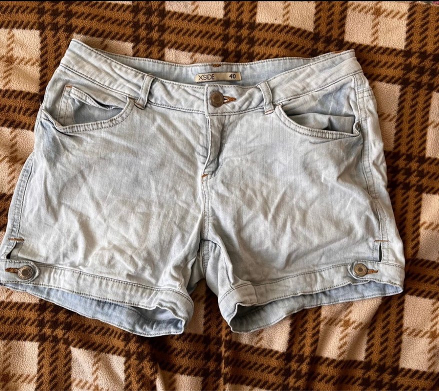 Düğmeli, bol kesim bej renkli mini denim şort, günlük kullanım için rahat ve sokak tarzında tasarlanmıştır. Desensiz ve kısa boydadır.