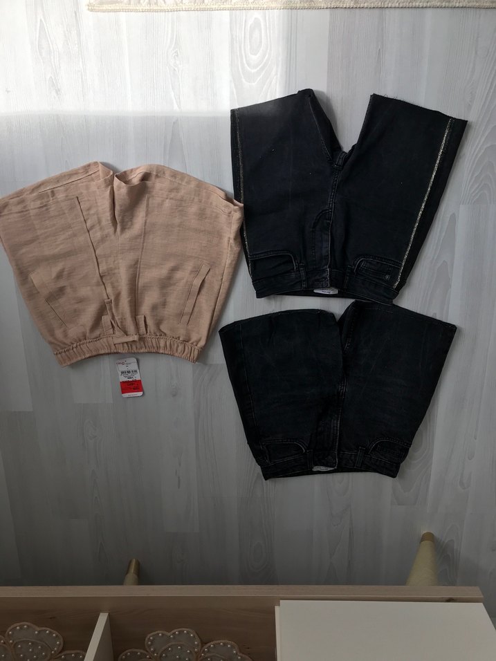 Kadınlar için bej mini kumaş pantolon, bol kesim ve sentetik kumaştan üretilmiştir. Günlük kullanıma uygun, rahat ve şık bir sokak stili sunar. 3 adet şort pantolon 2 si bershka marka 1 i etiketli hiç kullanılmamış görüldüğü gibidir hepsi birlikte fiyattır
