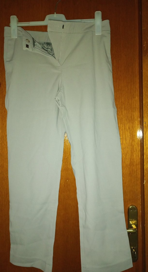 Kadınlar için bej renkte, ipeksi dokulu, normal kesim ve midi boy kumaş pantolon. Rahat ve şık, ofis için uygun normcore tarzda.