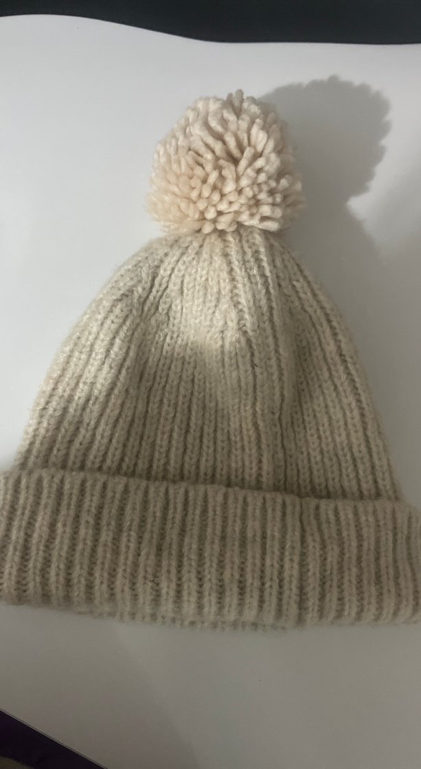 Kadınlar için bej renkli, örgü dokulu ve ponponlu bere, rahat ve sade bir tarz sunar.