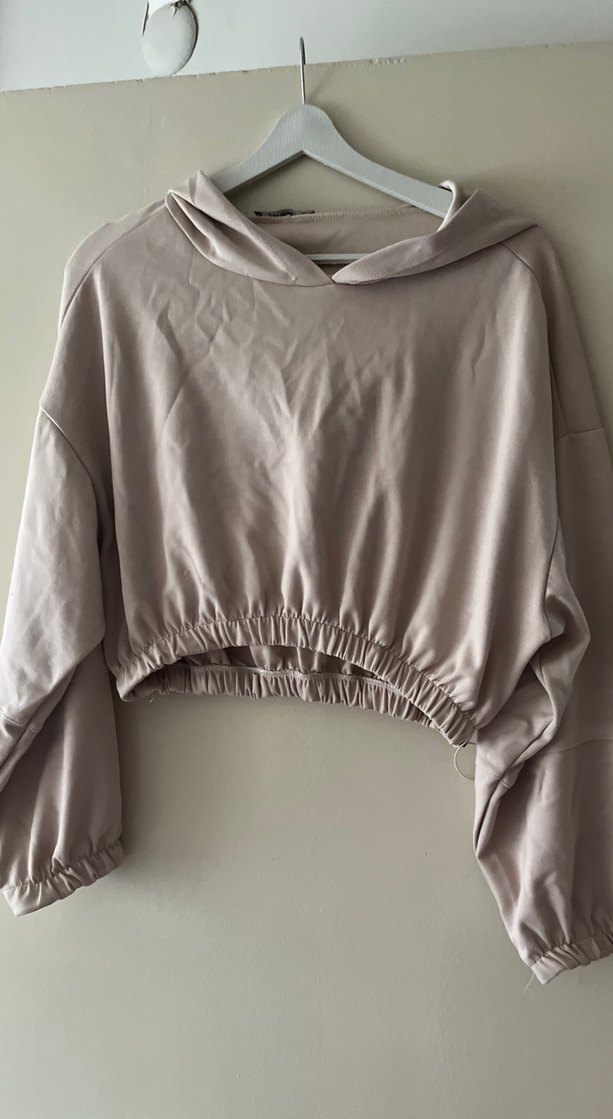 Kadın Bej Oversize Kısa Sweatshirt
