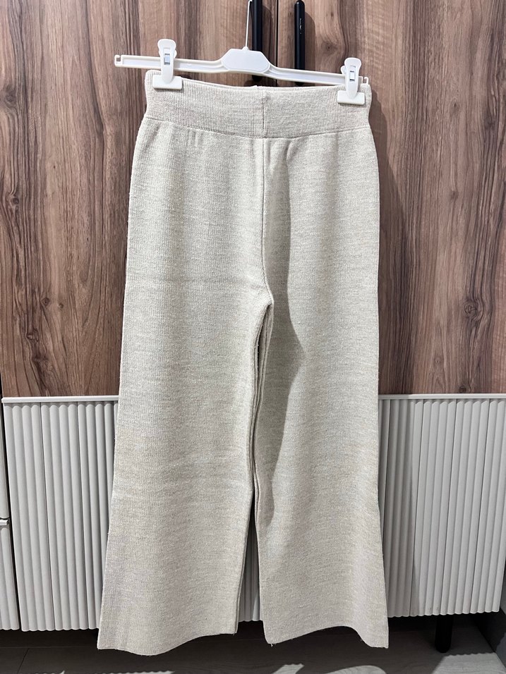 Kadın Bej Pamuk Örme Rahat Pantolon