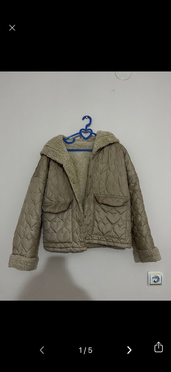 Kadın Bej Peluş Detaylı Rahat mont