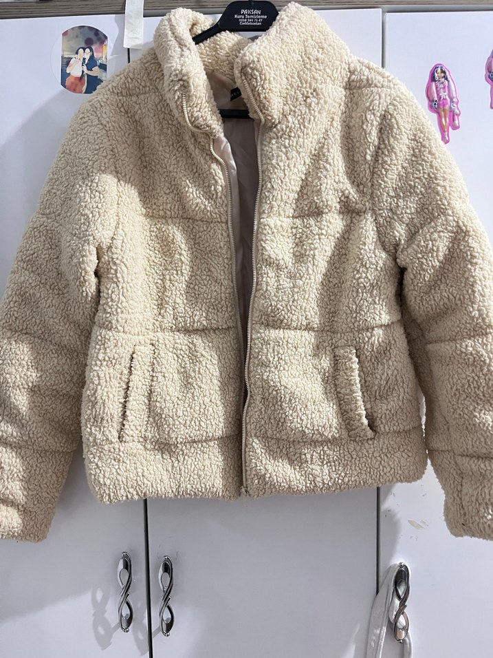 Kadın Bej Peluş Kısa Sıcak Mont
