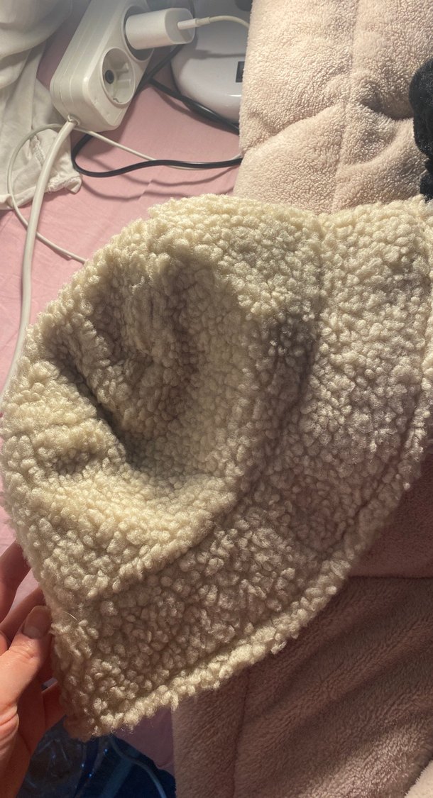 Kadınlar için pastel bej renginde, peluş ve kürk detaylı, sıcak tutan şapka. Sokak stiline uygun rahat bir model.