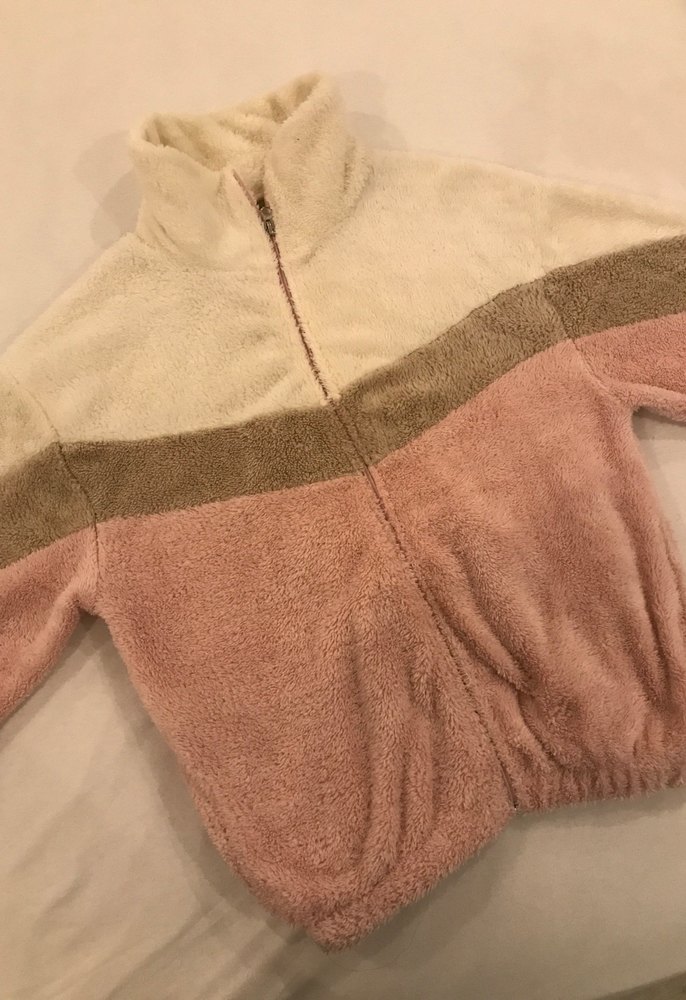 Yumuşak ve sıcak kumaştan yapılmış, yüksek yakalı ve uzun kollu kadın bej peluş ceket. Gevşek kesimi ve pastel bej, kahverengi, pembe renkleriyle rahat sokak stili için uygundur.
