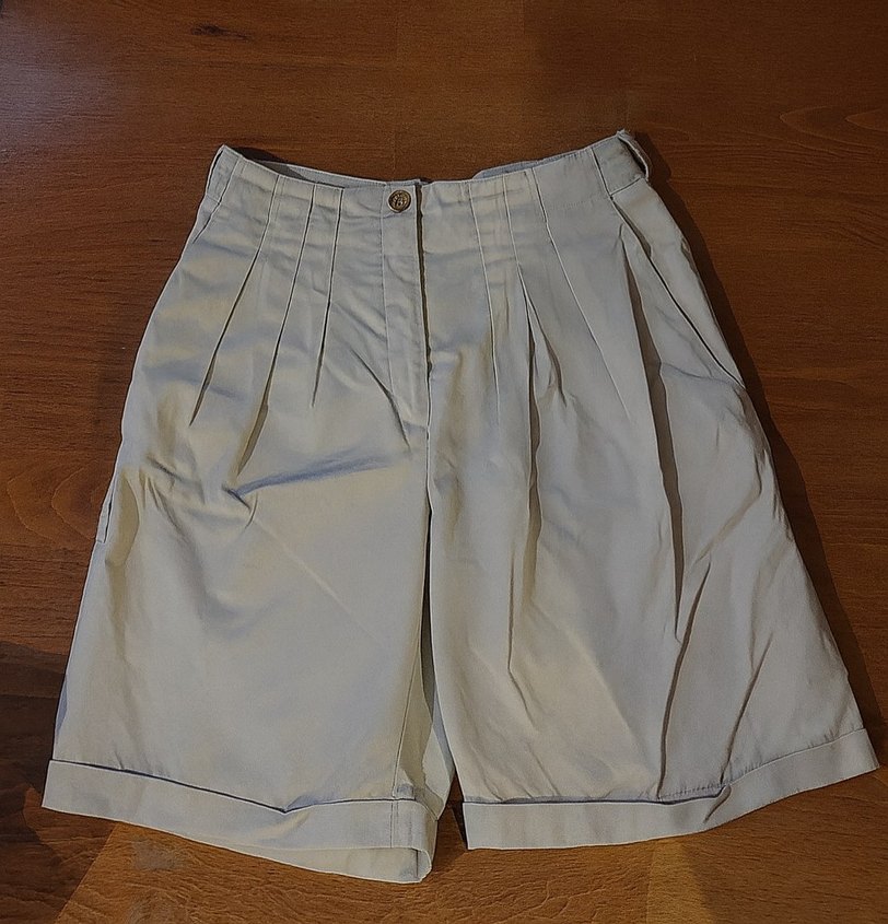Bej renkli, keten kumaştan pilili, bol kesim bermuda şort. Günlük kullanıma uygun, kısa ve sade tasarımlı şort.