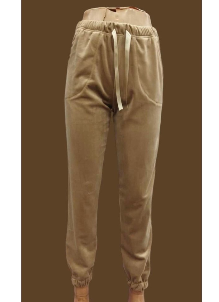 Bej renkte kadife kumaştan, rahat kesimli, lastikli bel ve bağcıklı kadın eşofman, günlük kullanıma uygun şık ve rahat bir tasarım sunar. ✨