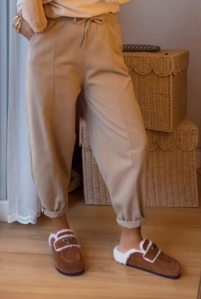 Kadın Bej Rahat Kesim Pantolon