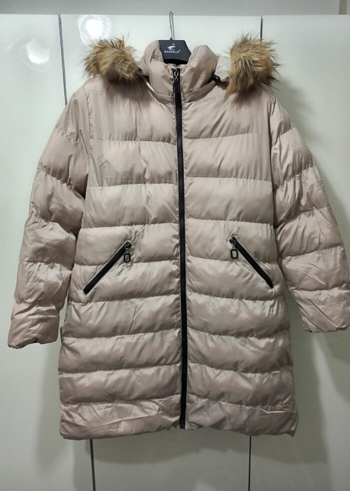 Kadın bej rengi şişme mont orta boy