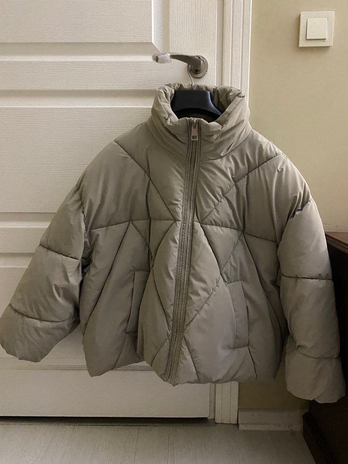 Bej renkte, şişme kısa mont, yüksek yakalı ve vücuda oturan kesime sahip. Yumuşak ve sıcak fleece kumaştan, günlük rahat sokak stili için uygundur. Sitesinde fiyatı 3.500 TL’dir. Hiç kullanılmadı alıcısına pazarlık olur.