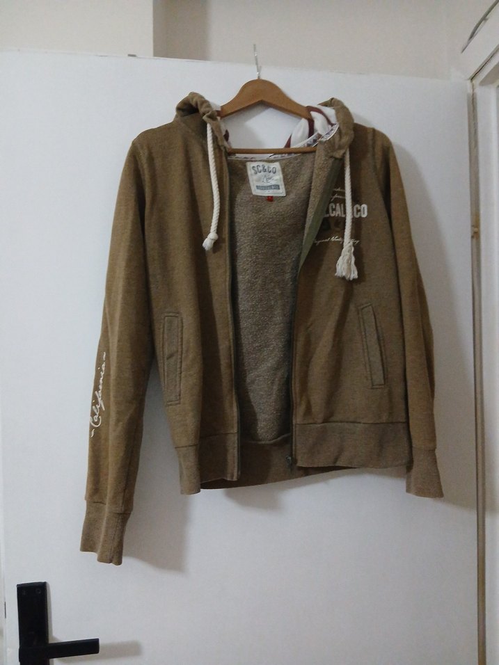Uzun kollu, yuvarlak yaka, fermuarlı kadın bej süet ceket. Rahat kesimi ve baskılı detaylarıyla günlük sokak tarzına uygundur.