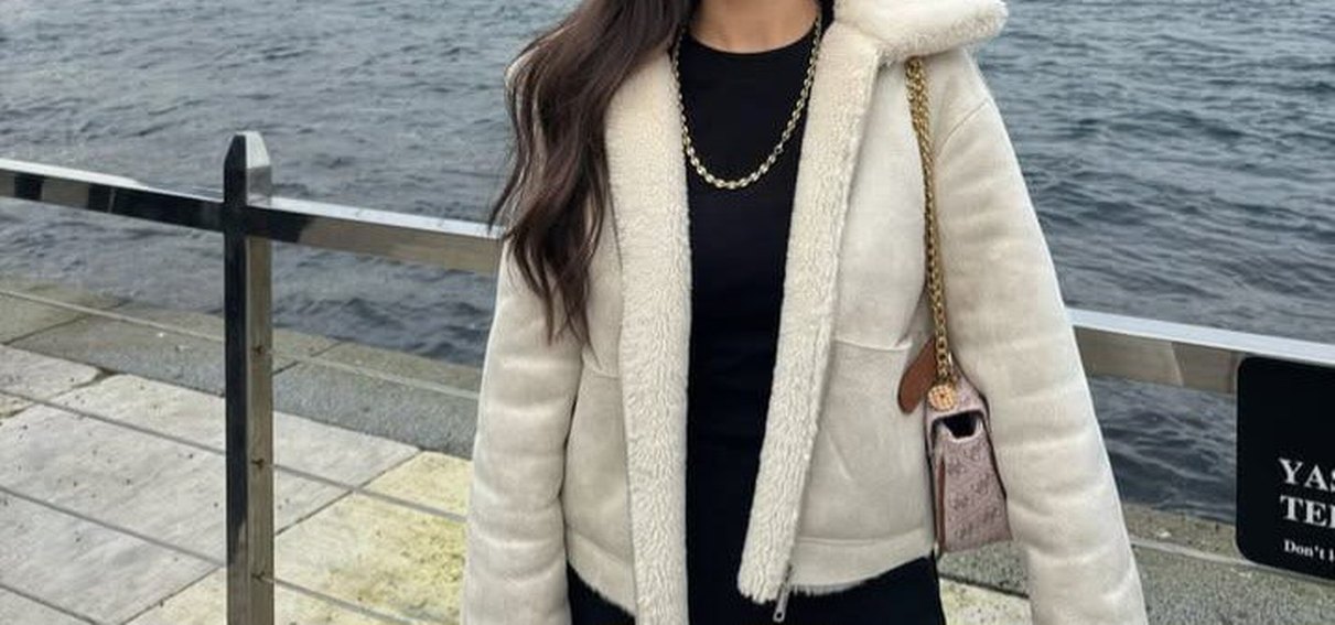 Bej renkli süet kadın ceket, yakalı ve kürklü detaylara sahiptir. Uzun kollu, midi boy ve dar kesimdir, günlük sokak stiline uygundur. ✨