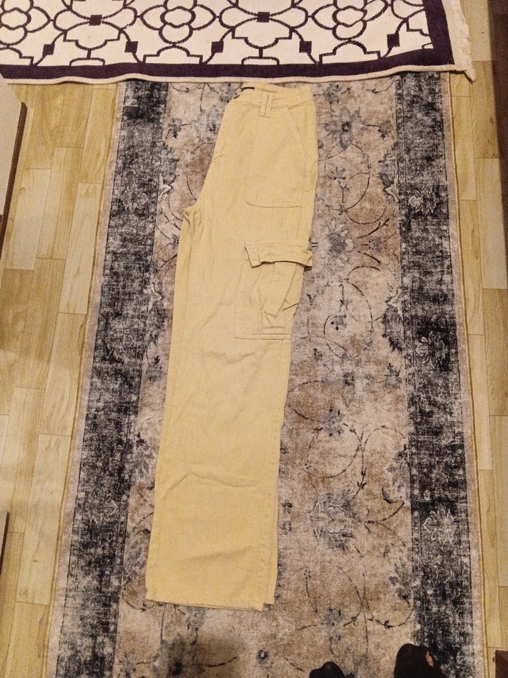 Bej süet kumaştan, kürk detaylı, rahat kesim kadın pantolon. Sokak stiline uygun, dış mekan kullanımı için ideal.