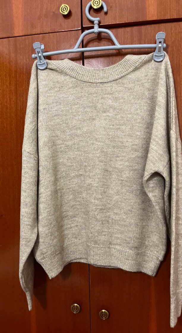 Bej renkli, yuvarlak yakalı ve uzun kollu triko kazak. Rahat kesimi ve normal boyu ile günlük kullanıma uygun sade tasarım. Sırt dekolteli Yeni ürün