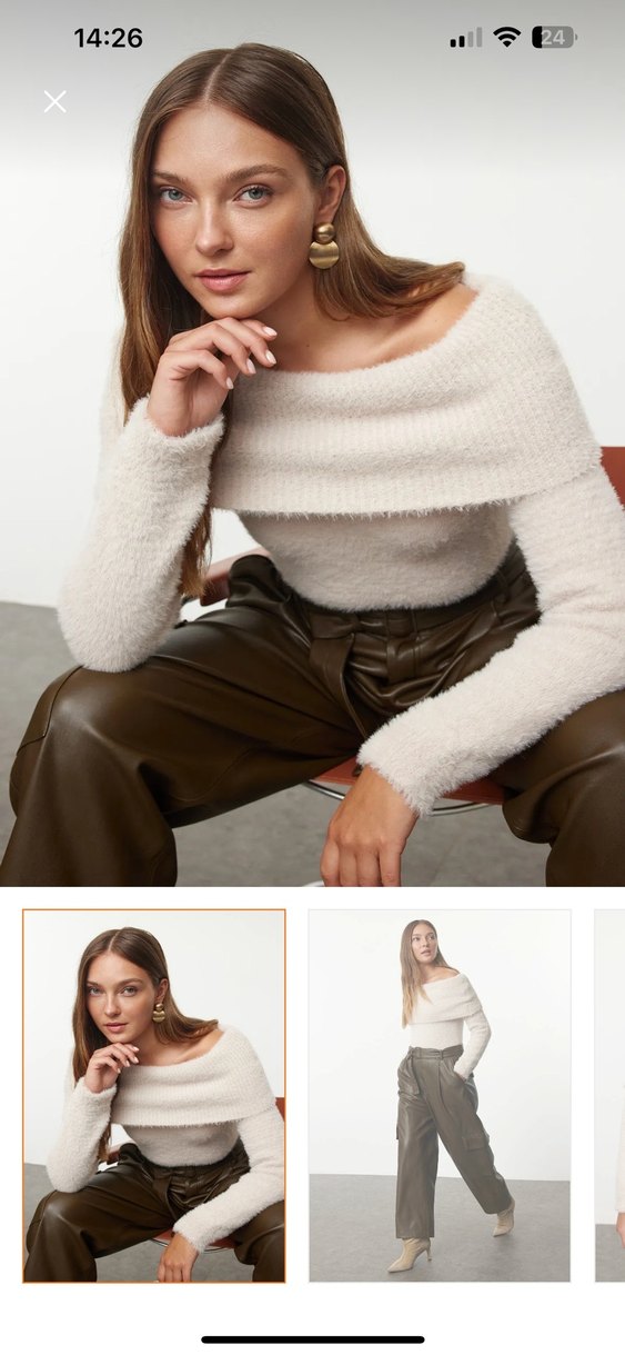 Bej renkli, kayık yaka ve uzun kollu, tüy detaylı, vücuda oturan kazak. Günlük kullanıma uygun, çağdaş tarzda.
