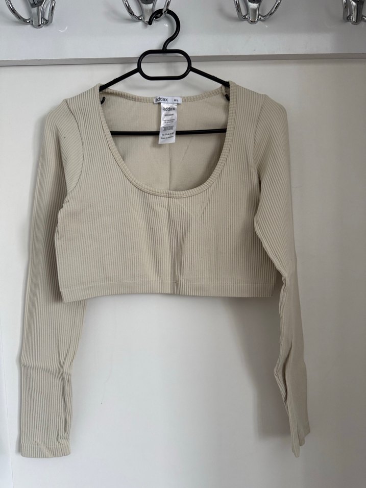 Bej renkli, uzun kollu ve yuvarlak yaka crop top. Yumuşak sentetik kumaştan, sade ve şık tasarım, günlük kullanım için uygun. 4. farklı renk seçenini bulunur ilan açtırınız .