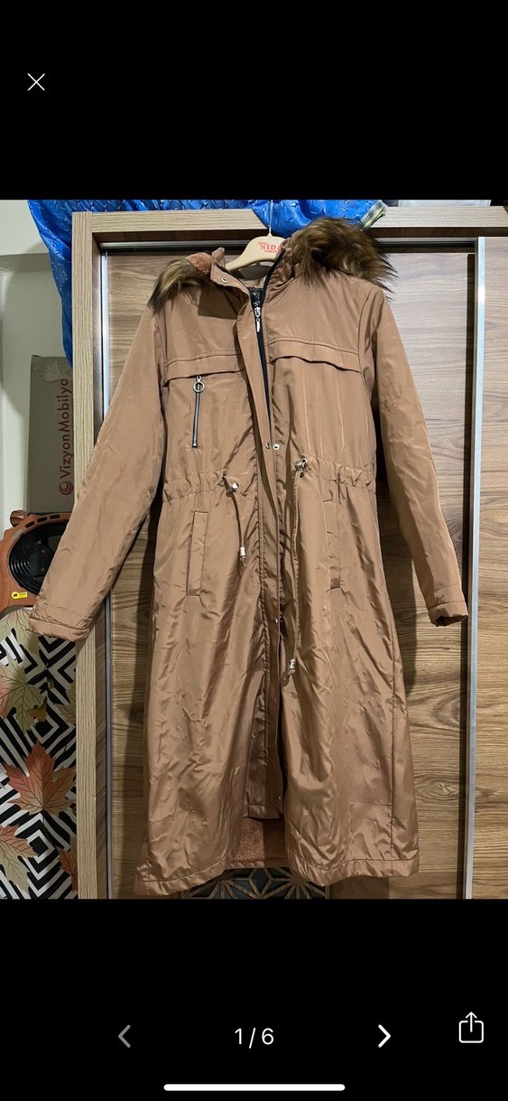 Kadın Bej Uzun Kürklü Sokak Stili Mont