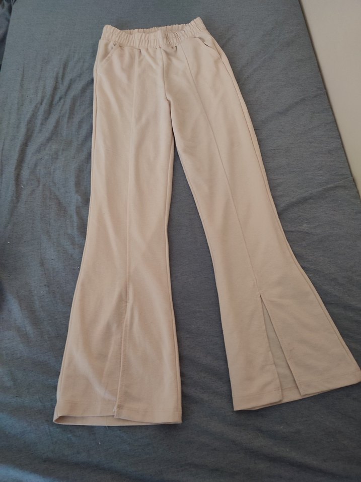 Kadınlar için bej renkli, regular fit ve uzun boy beli lastikli pantolon. Yanlarda yırtmaç detayıyla, yumuşak sentetik kumaştan üretilmiştir. Günlük kullanıma uygundur. rahat ve şık bir ürün, hiçbir kusuru yok. bana küçük geldiği için satıyorum.