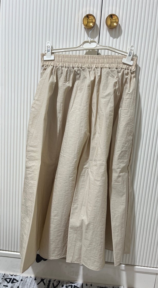 Bej renkte, keten kumaştan yapılmış, piliseli ve bol kesim uzun etek. Minimalist tarzıyla günlük kullanıma uygundur. Sıfır ürün hiç giyilmedi