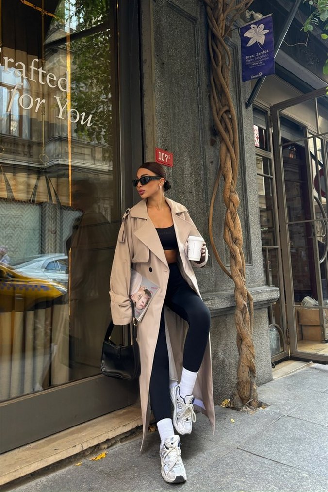 Uzun, bej renginde trençkot, bol kesim ve uzun kollu. Notlu yaka detayıyla günlük sokak stiline şık ve rahat bir dokunuş katıyor. Desensiz ve açık tonlarda. S ve L bedenleri mevcuttur.