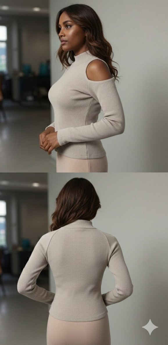 Kadın bej rengi, yüksek yakalı ve uzun kollu, omuz detayı bulunan, soft ve sıcak kumaştan üretilmiş modern kesim triko. Günlük kullanıma uygun, rahat ve şık likralı. Göğüs: 72 Cm. Bel: 70 Cm . Boy: 43 Cm. Kendi etiket kartımla gelicektir. Marka: Trendyol. S/36-M/38 Uygundur.