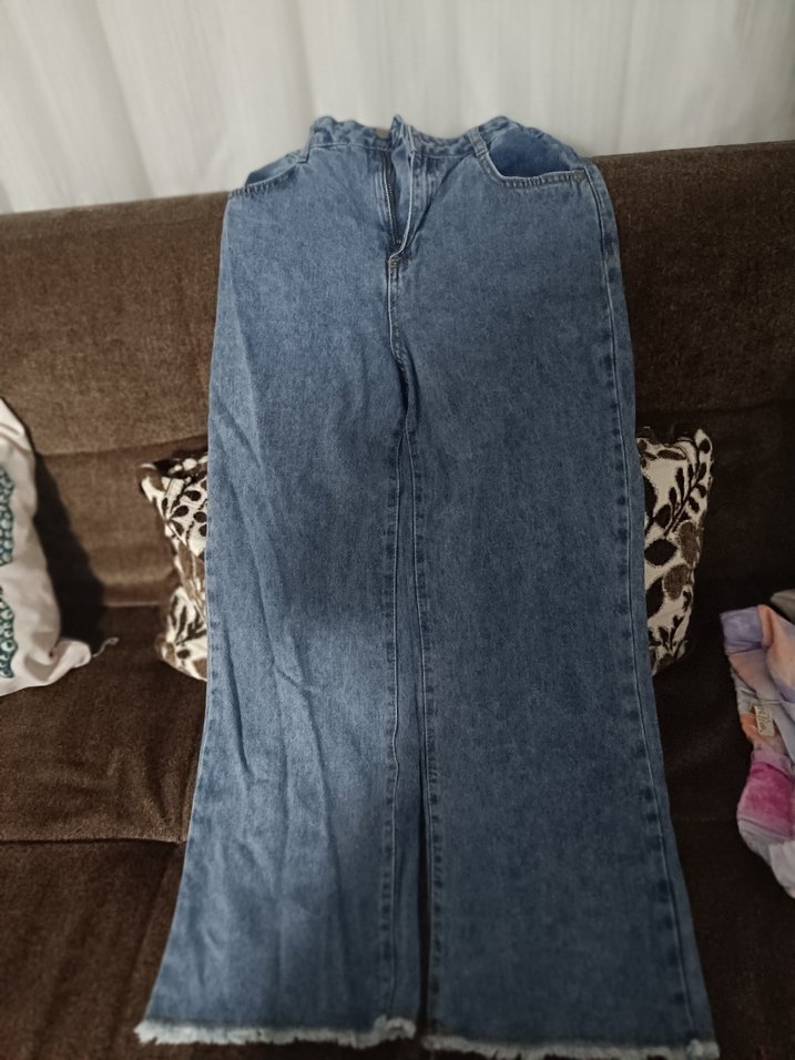 bel detaylı, bol kesim ve uzun boy kot pantolon. Mavi-gri tonlarında, desen içermeyen, günlük kullanıma uygun rahat tarzda bir ürün.