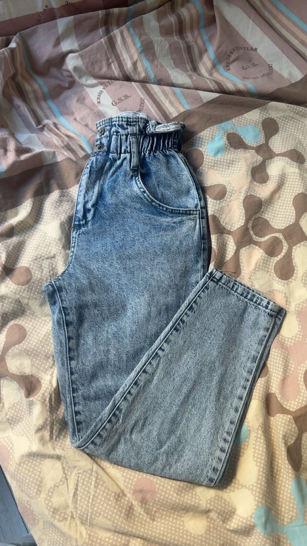 Kadın Beli Kemerli Geniş Kesim Denim Pantolon