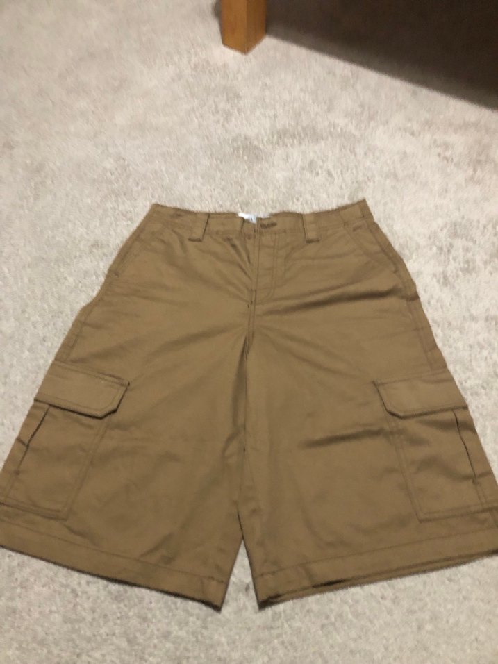 Kadın kahverengi midi kargo şort, bol kesim ve parlak pamuk kumaşla günlük rahat sokak stili için uygundur.