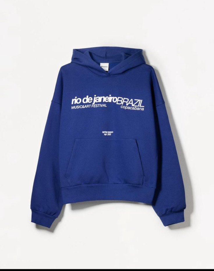 Kadın Bershka Mavi Kapüşonlu Baskılı Sweatshirt