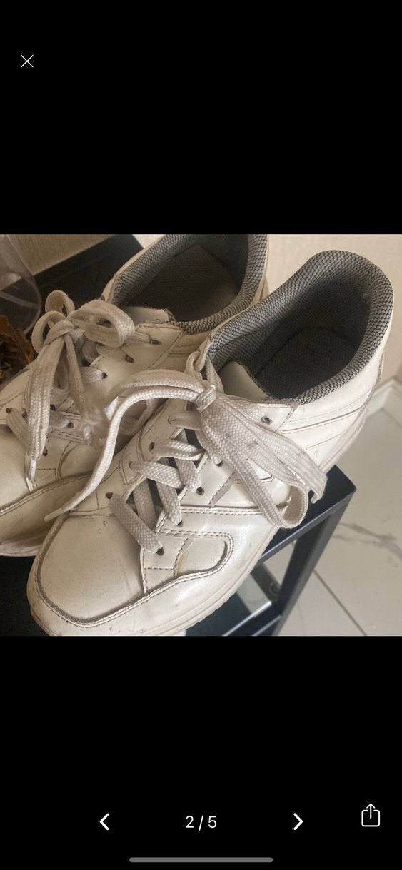 Gri iç astarlı, bağcıklı ve dolgu topuklu beyaz kadın spor ayakkabısı. Günlük kullanıma uygun, kauçuk malzemeden üretilmiştir. Zara
