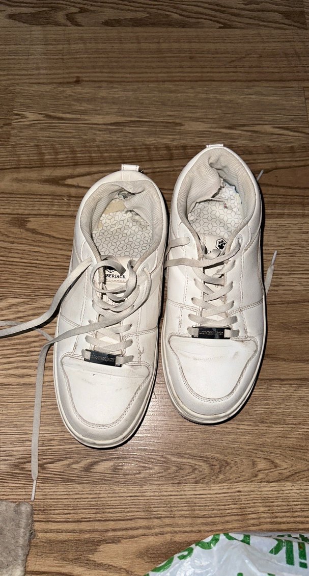 Kadınlar için beyaz, bağcıklı ve ince topuklu spor ayakkabı. Kauçuk malzemeden üretilmiş, günlük sokak stili için uygun ve desensiz.