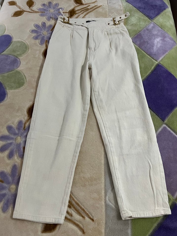 Kadın Beyaz Bağlamalı Pamuklu Rahat Kot