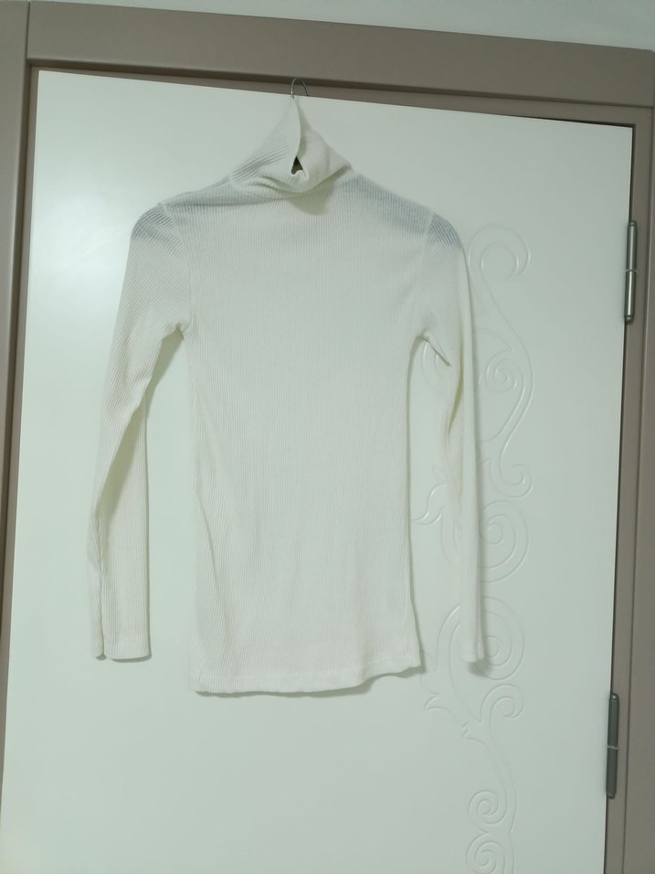 Kadın beyaz balıkçı yaka, ince ve uzun kollu triko. Yumuşak keten kumaştan, sade ve minimal tasarıma sahiptir. Günlük kullanıma uygundur. hiç giymedim