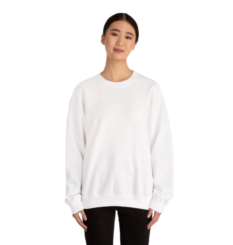 Kadın beyaz sweatshirt, yuvarlak yaka ve uzun kolludur. Rahat kesimi ve yumuşak, sıcak kumaşıyla gündelik sokak stiline uygundur. kendim üretiyorum