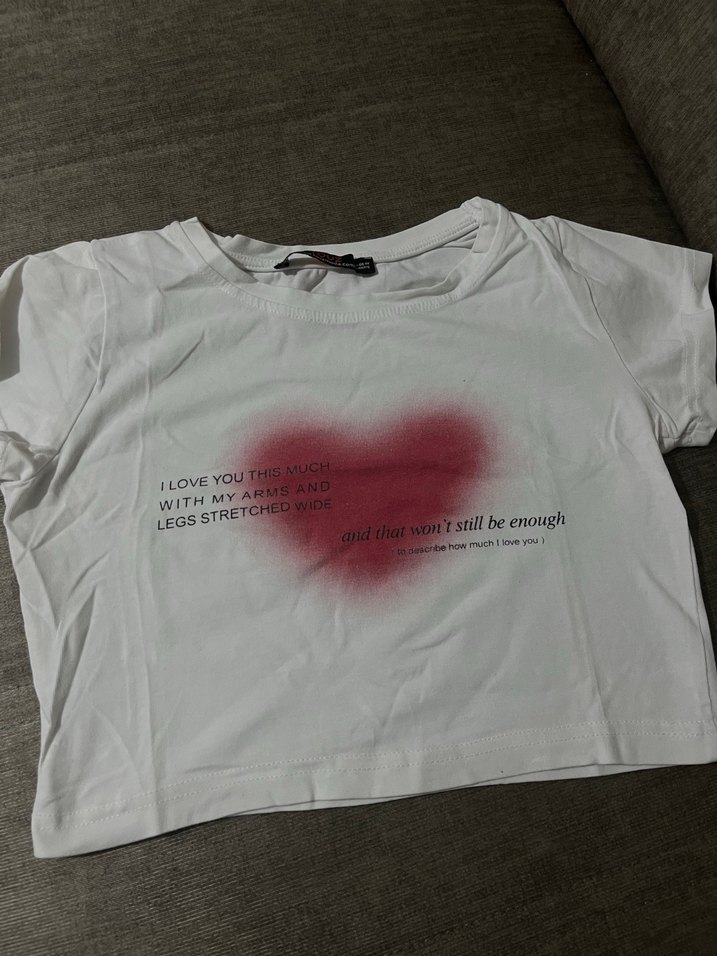 Pamuk kumaştan, kısa kollu ve bisiklet yaka kız çocuk tişörtü. Üzerinde pembe kalp ve yazılı baskı ile şık ve rahat bir görünüm sağlar.