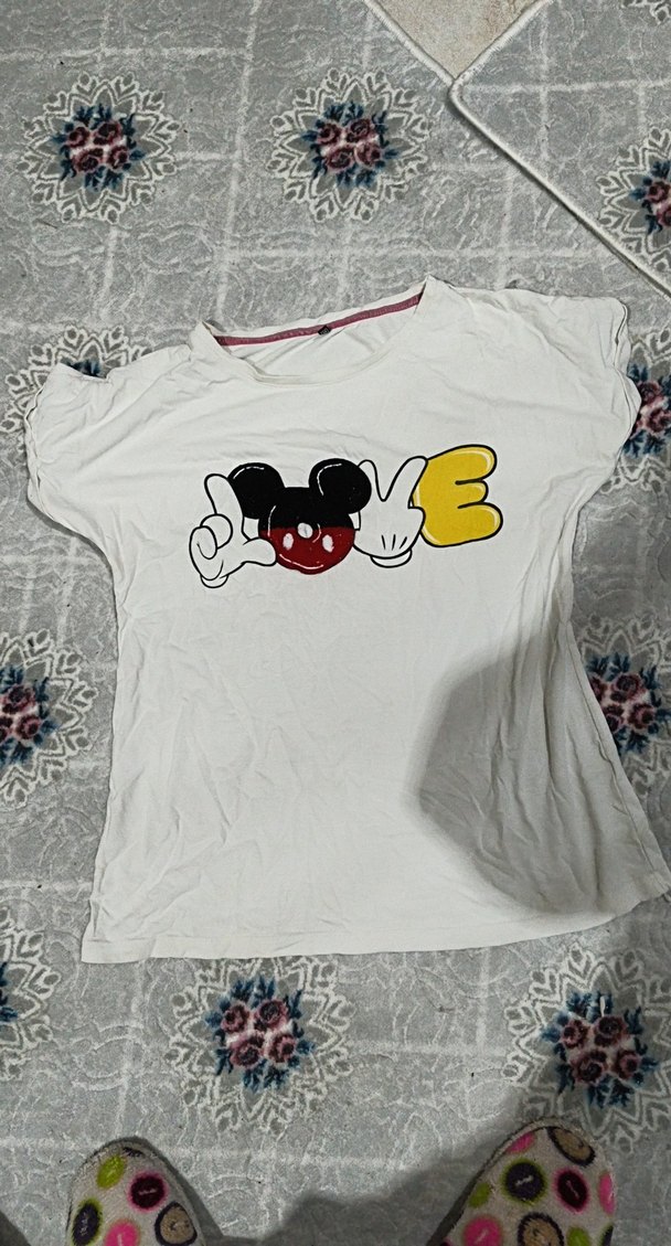 Kadınlar için beyaz tişört, yumuşak pamuk kumaş ve renkli baskı detayıyla. Kısa kollu, yuvarlak yaka ve bol kesim, kısa boyda, rahat sokak stili için uygun. ❤️