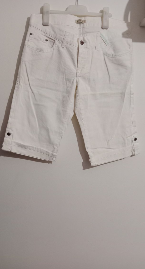 Kadınlar için beyaz bermuda şort, rahat kesim ve yumuşak pamuk kumaştan. Kısa ve sade tasarımıyla dış mekan kullanımı için uygundur.