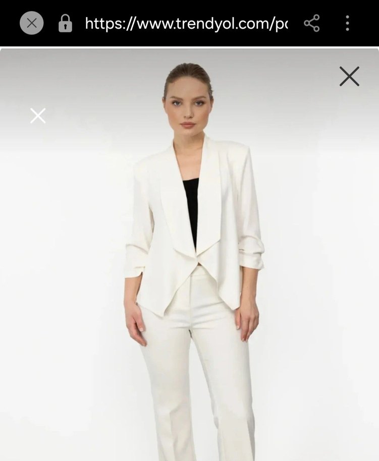 Kadın beyaz uzun kollu blazer ceket. önünde çok belli olmayan bir lekesi var görselini ekledim.