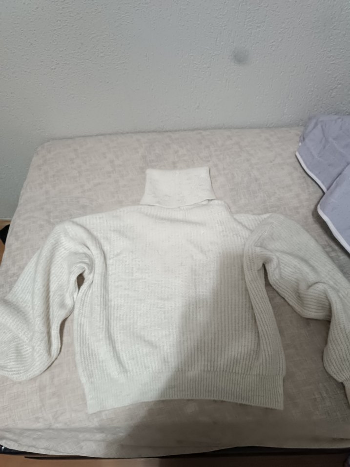 Kadınlar için beyaz boğazlı, uzun kollu ve örgü detaylı rahat kesim bir kazak. Yumuşak ve sıcak kumaştan, gündelik kullanım için uygundur. ❄️