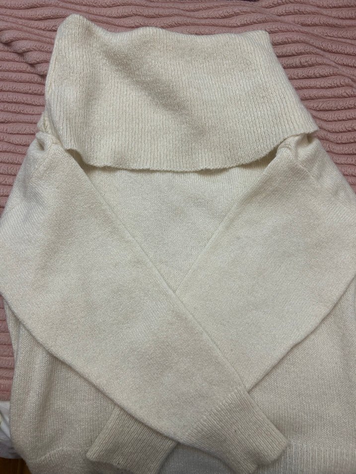 Fitted kesim, boğazlı ve uzun kollu kadın kazak, yumuşak triko kumaştan pastel beyaz renkte. Normal boyda, sade ve desensiz, günlük sokak stili için uygun.