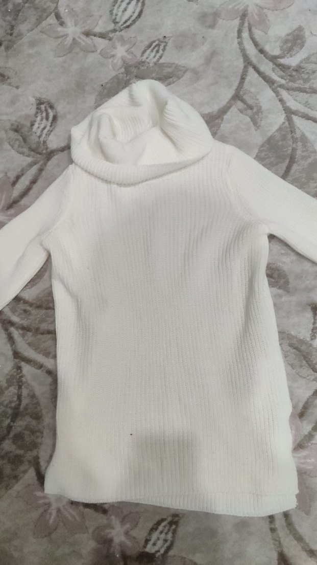 Yumuşak ve sıcak dokuda, boğazlı ve uzun kollu, beyaz renkli, vücuda oturan triko kazak. Düz deseni ve normal boyu ile günlük sokak stiline uygun.