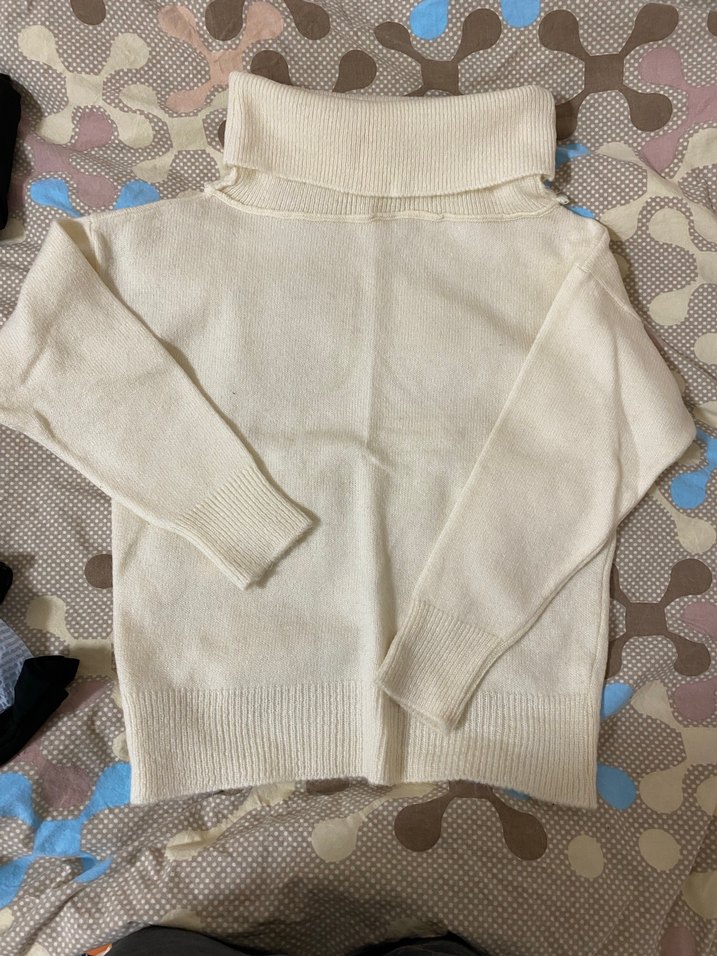 Bu beyaz triko kazak, uzun kollu ve boğazlı yapısıyla rahat ve şık bir günlük sokak stili sunar. hem boğazlı hem madonna yaka olarak kullanılabilir. tertemiz defosu yok