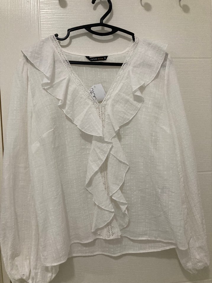 Kadın Beyaz Bohem Fırfırlı V Yaka Gömlek
