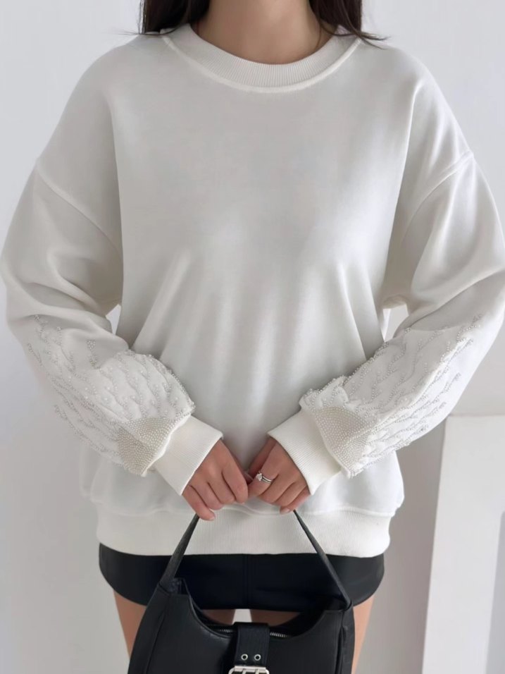 Premium kalite ekru renk, kolları boncuk işlemeli kadın bluz. Boncukları tek tek dikiştir kesinlikle dökülme olmaz. Çok şık harika bir model. S M L XL bedenleri mevcuttur.