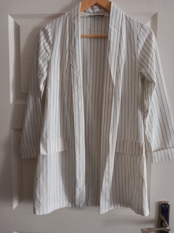 Kadın Beyaz Çizgili Keten Ceket